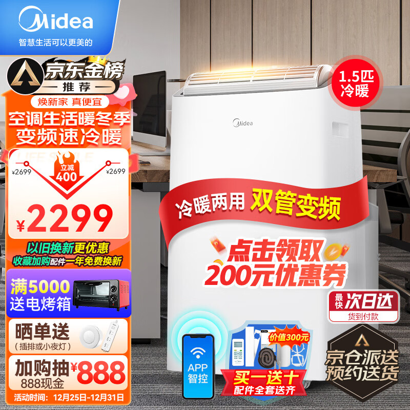 美的(Midea)移动空调冷暖1.5匹变频 京东小家智能生态 空调一体机免安装免排水 KYR-35/BP3N8Y-PT 京仓派送价格:2499.00元!