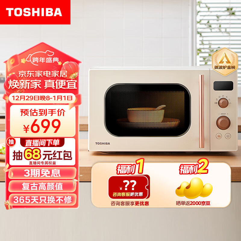 东芝 TOSHIBA ER-VS2200微波炉家用小型迷你复古转盘加热式微波杀菌 网红菜单高颜值 20L价格:749.00元!