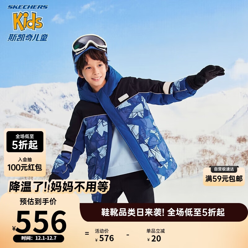 Skechers斯凯奇男女童秋冬保暖梭织大童中款羽绒服儿童休闲外套P423B037价格:576.00元!