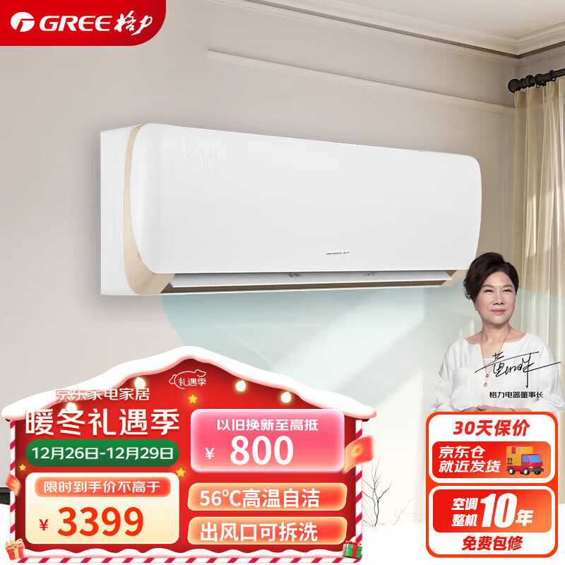 格力(GREE)大1匹 京玥 新一级能效 变频冷暖 出风口可拆洗 壁挂式空调挂机 KFR-26GW/(26526)FNhAa-B1价格:3399.00元!