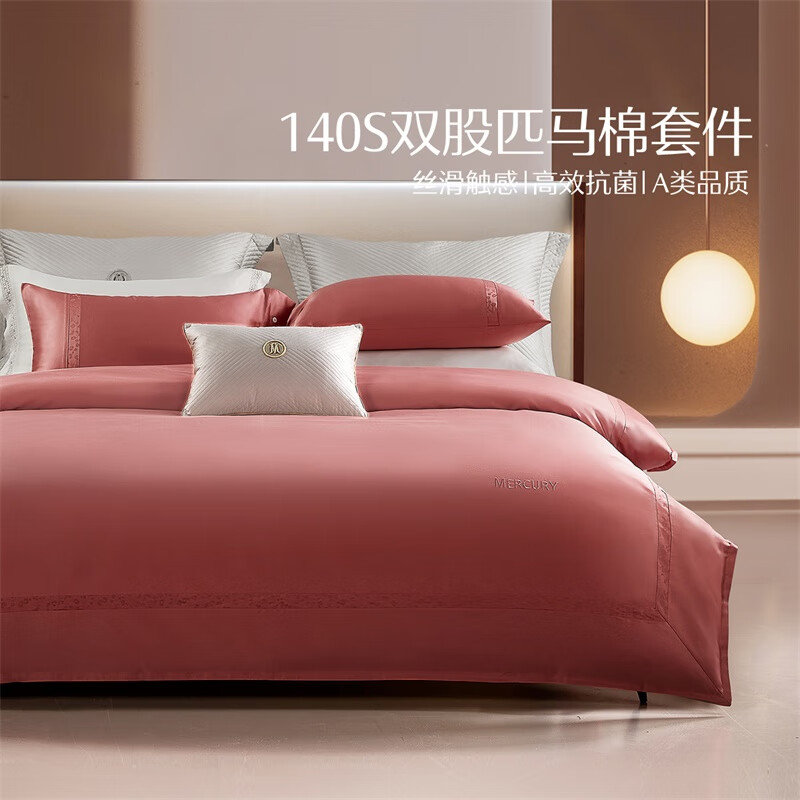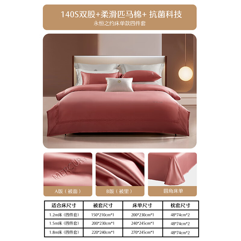 水星家纺140支匹马棉四件套A类高端抗菌酒店风轻奢套件1.5m床 永恒之约价格:3099.00元!