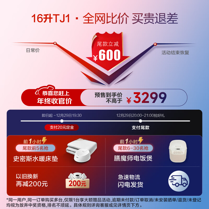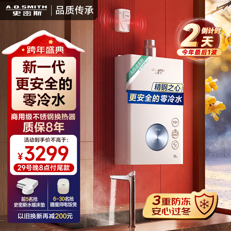 史密斯(A.O.SMITH)佳尼特16升零冷水燃气热水器 不锈钢换热器包8年 负压更 恒温大水量 JSQ31-TJ1 以旧换新价格:3299.00元!