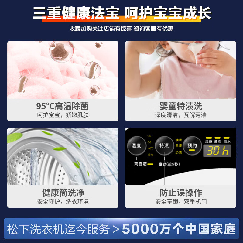 松下(Panasonic)婴儿小型洗衣机白色3.2公斤 迷你小滚筒全自动 95℃除菌洗 特渍洗? 宝贝星宠肌洗系列 XQG32-A3121价格:3299.00元!