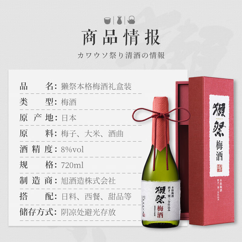 獭祭(Dassai)23二割三分日本清酒 本格梅酒 720ml 礼盒 纯米大吟酿价格:1549.00元!