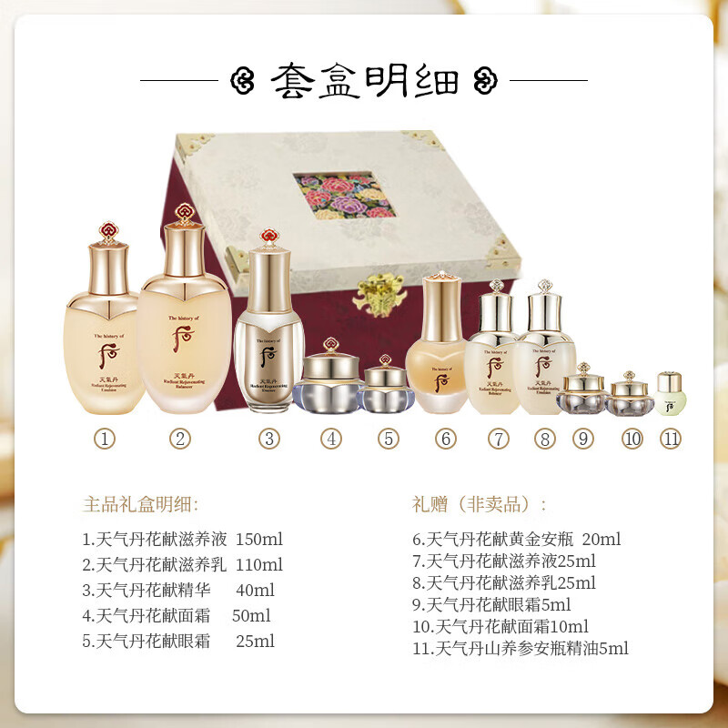 后Whoo天气丹花献滋养皇后护肤品11件套盒套装465ml价格:2169.00元!