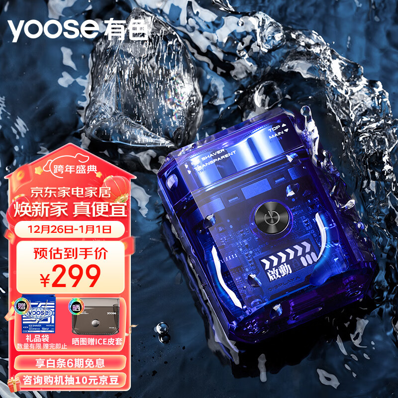 有色(yoose)电动剃须刀 迷你便携 透明机身 男士刮胡刀 全身水洗 送男友生日圣诞礼物 胡须刀礼盒 ICE 透明蓝价格:399.00元!