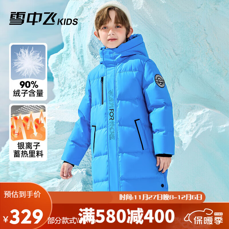 雪中飞【蓄热】童装儿童羽绒服男童女童纯色中大童拼接羽绒服浅蓝120cm价格:729.00元!