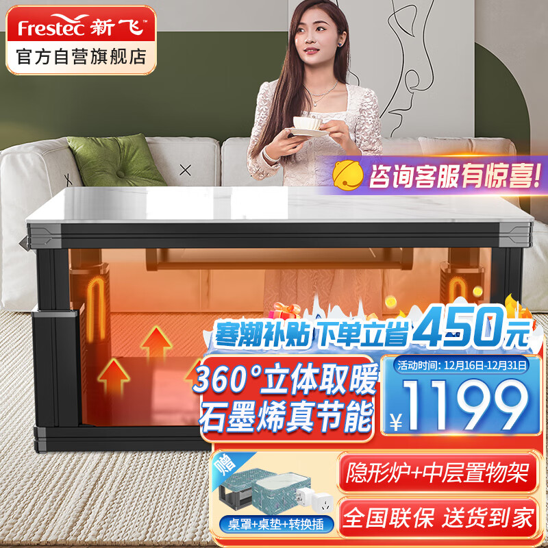 新飞电暖桌1.2米长方形取暖桌烤火茶几带升降语音控制取暖器家用变频电暖烤火炉多功能餐桌烤火桌XF-C4价格:1665.00元!