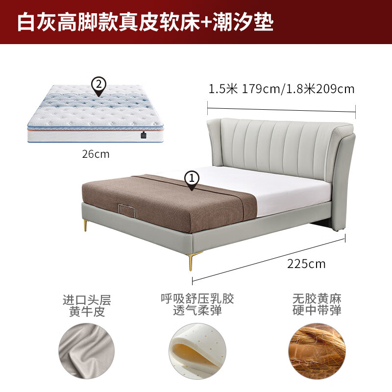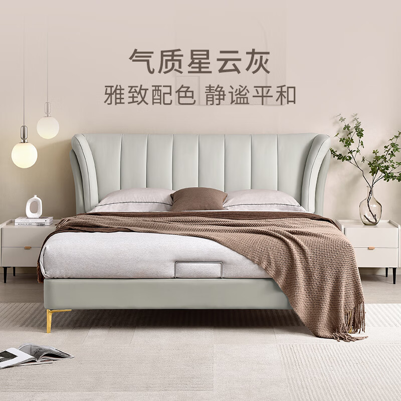 顾家家居(KUKA)现代简约皮床双人床卷装排骨架主卧8087【白灰】+M0099C 1.5米价格:5699.00元!