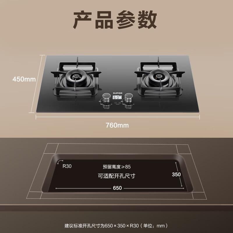 3、苏泊尔这款燃气灶使用一段时间后感觉还是不错的,火力猛、外观漂亮实用。原来的旧灶拆下后,新灶尺寸安装也刚刚好,安装很方便。