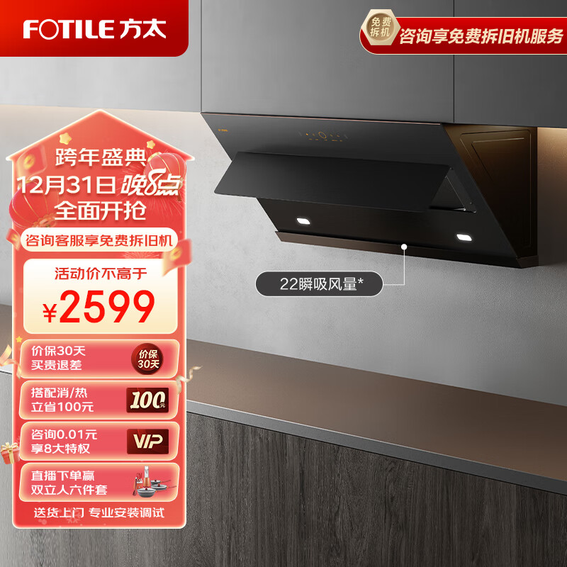 方太家用侧吸式抽油烟机 22瞬吸风量 挥手智控 小尺寸JCD9A价格:2599.00元!