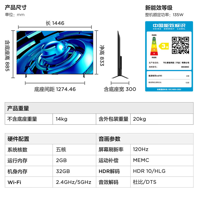 FFALCON65S365C配置参数: