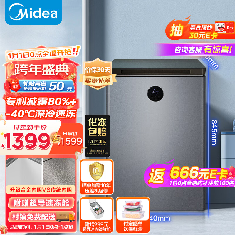 美的(Midea)100升 -40度超低温深冷速冻锁鲜冰柜 电子控温减霜节能家用海鲜小冷柜 母乳小冰箱 BD/BC-100KEMS价格:1399.00元!