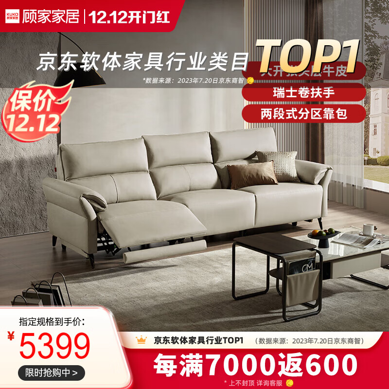 顾家家居现代意式头层牛皮功能沙发客厅6177【柔】三人位右电动价格:5399.00元!