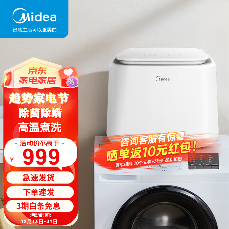 美的(Midea)洗衣机波轮全自动小型家用迷你 内衣内裤婴儿孩童宝宝洗衣机 高温煮洗除菌除螨 大屏焕净洗衣机 【1公斤】MNB10VA0WE 白色价格:999.00元!