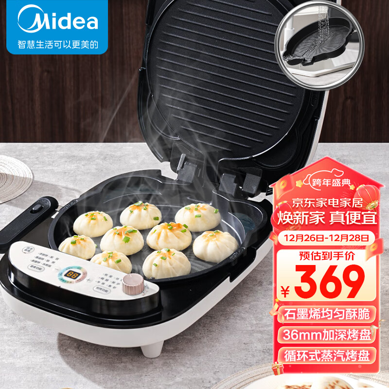 美的电饼铛智能家庭用加深上下盘可拆洗双面加热大火力煎饼烙饼锅三明治机早餐机蒸汽嫩烤煎烤JKS3088价格:369.00元!