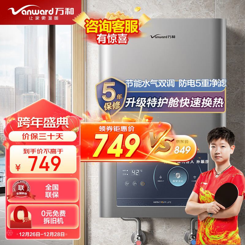 万和(Vanward)12升燃气热水器天然气水气双调恒温ECO节能5重净滤双防电保护防冻 E2D12【升级特护舱快速换热】价格:848.00元!