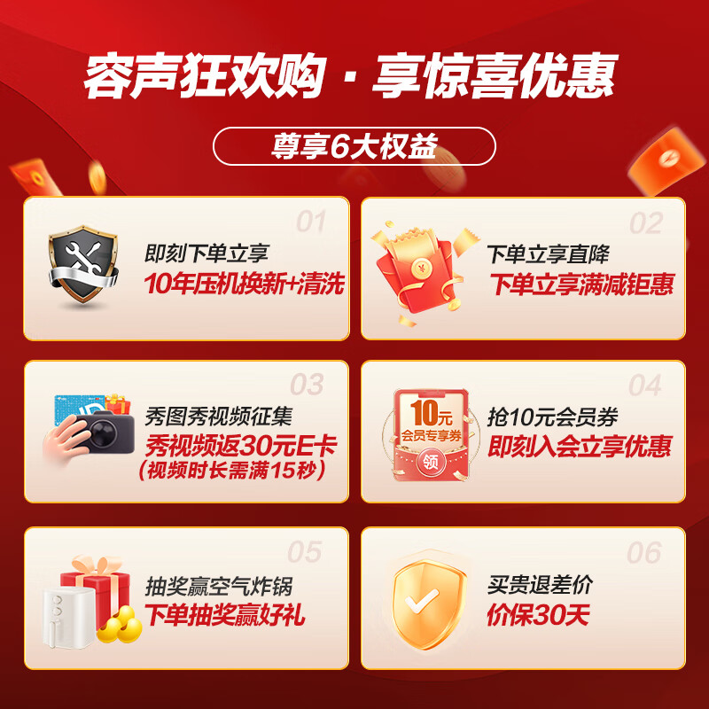 2、颜色大气,很有质感。容量很大,选择了很久选择了这一款,双循环双系统+法式,不容易串味,而且空间利用率很高。包装也很好,物流很快,第二天就送到家里了。