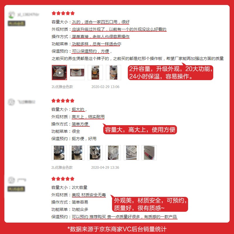 5、这款电加热水壶,烧水煮茶煮面做稀粥,药膳冲奶都可以,还可以长时间保温,太实用了!第二次购买了,之前一个好几年前买的放上班办公室用了,质量好,烧花茶特别好,很浓郁,吃了后皮肤都好很多