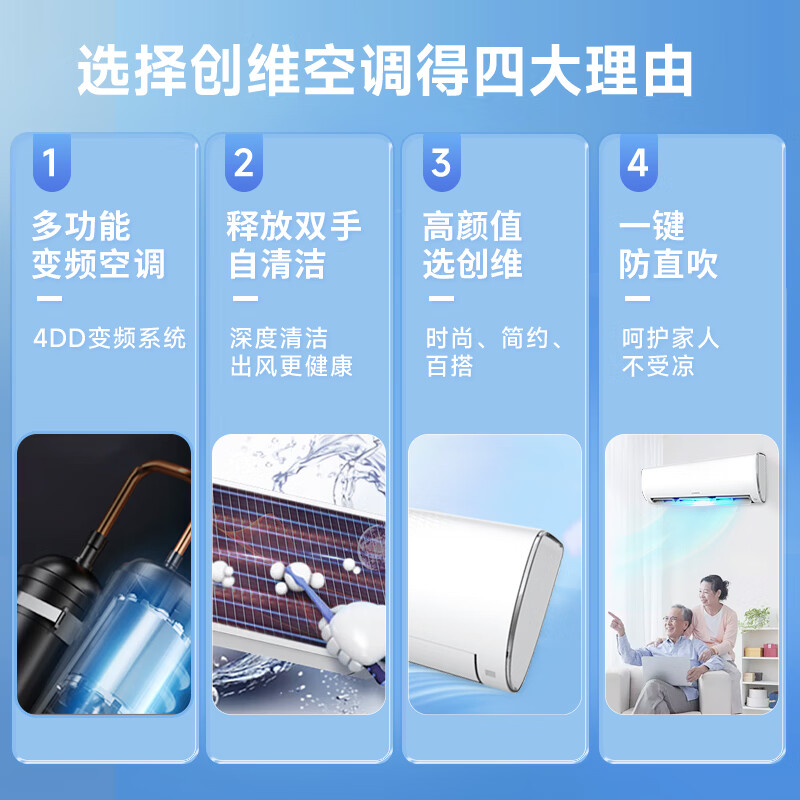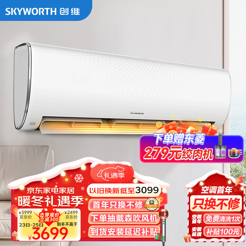 创维(SKYWORTH)2匹挂机新能效 变频冷暖 空调挂机 壁挂式卧室 以旧换新KFR-50GW/V3KC1A-N2价格:3699.00元!
