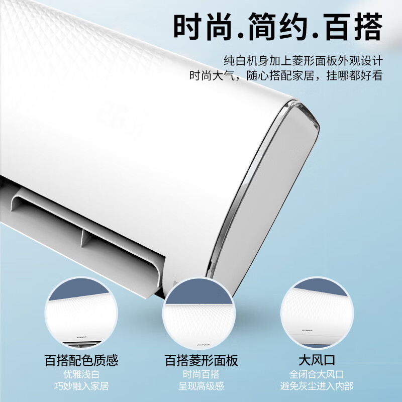 3、外形外观:颜色靓丽时尚冷暖效果:效果好制冷快静音效果:静音效果好节能效果:一级很省电