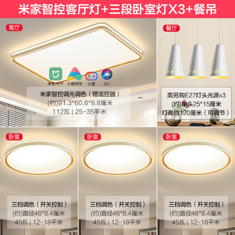 4、美观实用,重要的是足够亮,足够简洁,爱了,买的套装价格更代惠些,这个价格能买全套己经很不错了,灯外观漂亮,适合简约风格,有4个亮度可调,也可语音