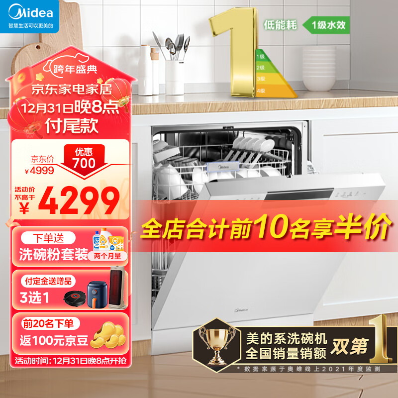 美的(Midea)15套嵌入式洗碗机 RX600-W 新一级水效 三星消毒 节能分层洗 热风烘干 三层喷臂 独立式两用 白色价格:4599.00元!
