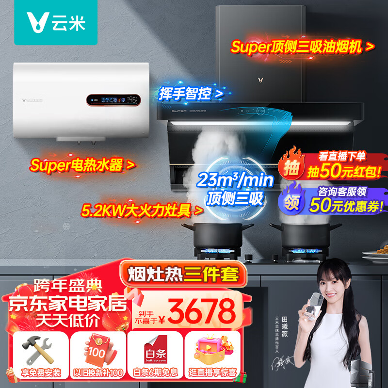云米(VIOMI)super 油烟机CXW-300-VK715+super 5.2kw猛火灶JZT-VG507+电热SuperVEW6022套装价格:3678.00元!