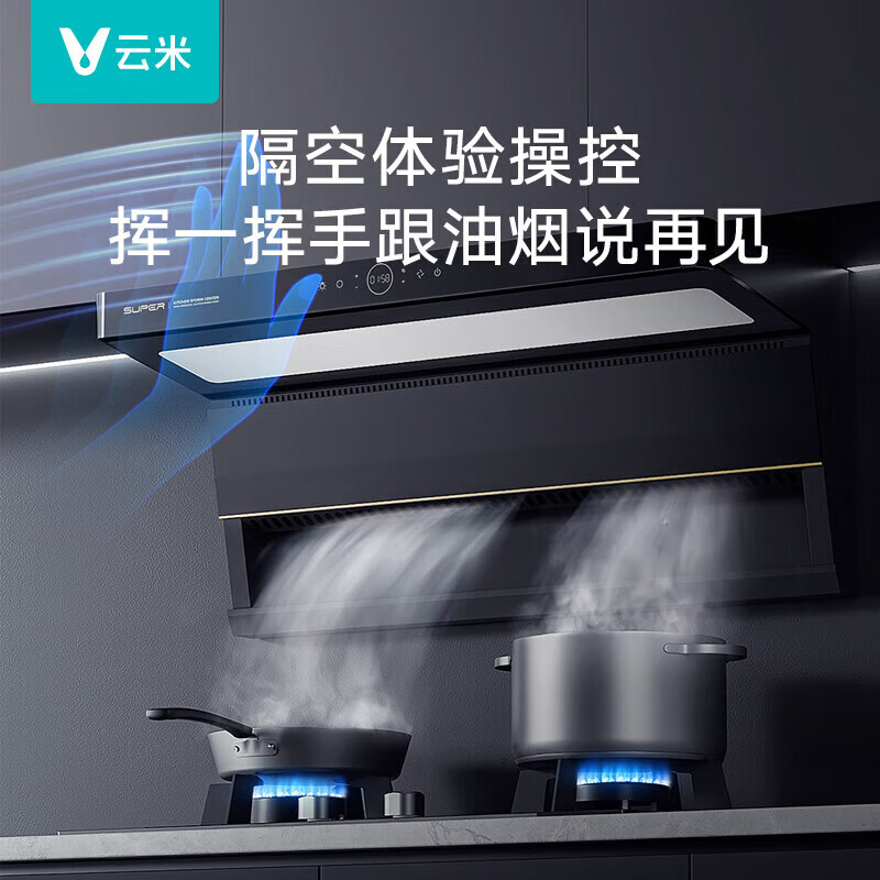 1、油烟机真的很不错,前年新家也是装了一台云米的油烟机和灶具,确实吸力很大,能保持清爽干净,这一款super的吸力更大,还能自清洁,配置的管道也刚好够,挥手功能很好用,不用担心油手抹得到处都是,可以连接米家系统,联动烟机和灶具,一打开灶具油烟机就自动打开了,挺不错的,推荐大家购买