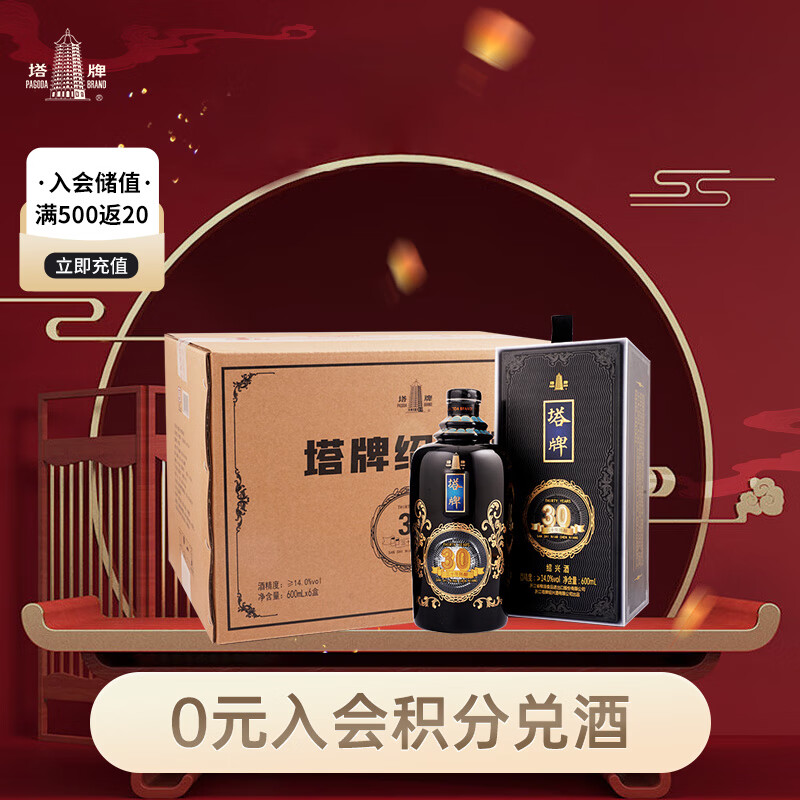 塔牌 花雕酒三十年 半干型 绍兴黄酒 600ml*6瓶 整箱礼盒装价格:2780.00元!