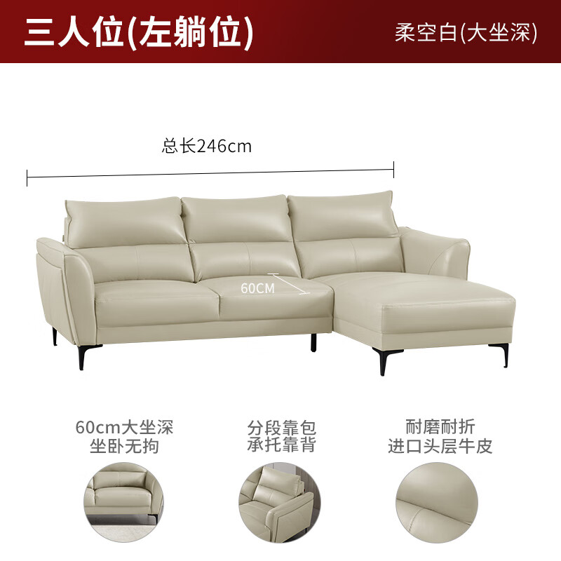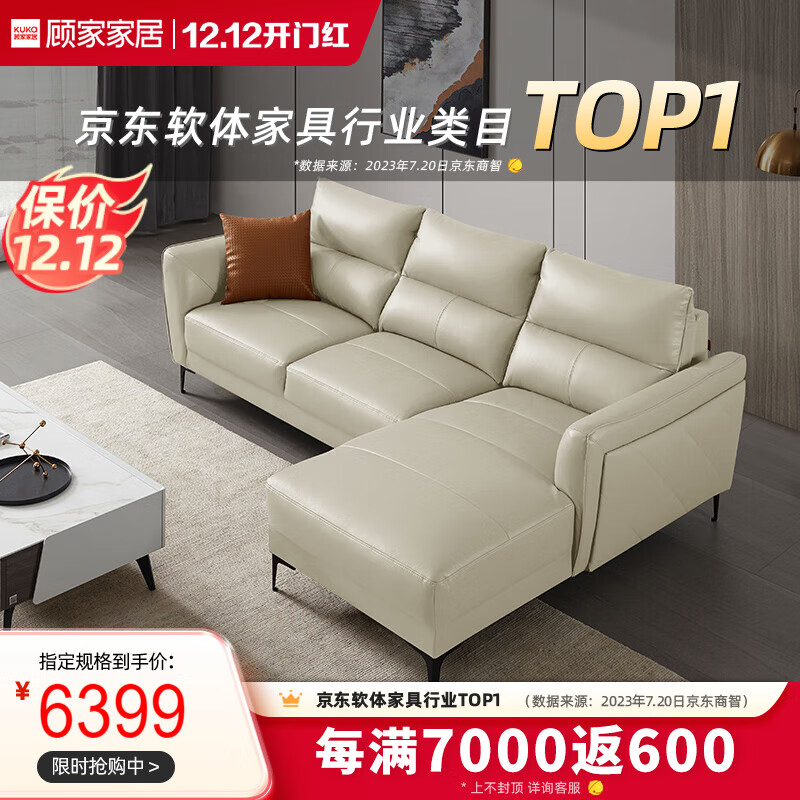 顾家家居(KUKA)皮沙发现代轻奢沙发客厅沙发1107【柔】三人位左躺位大坐深价格:6399.00元!