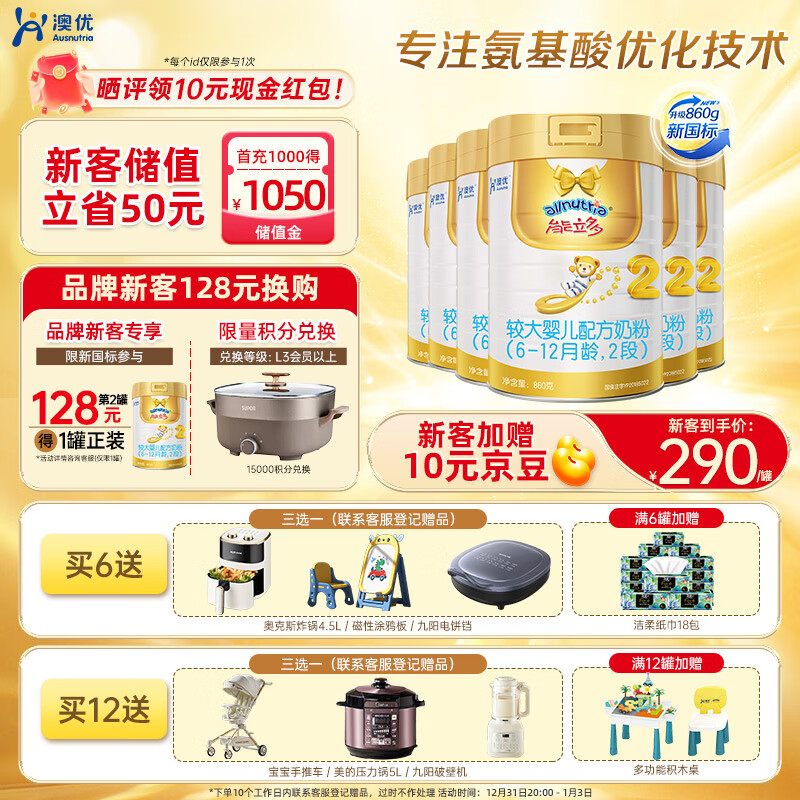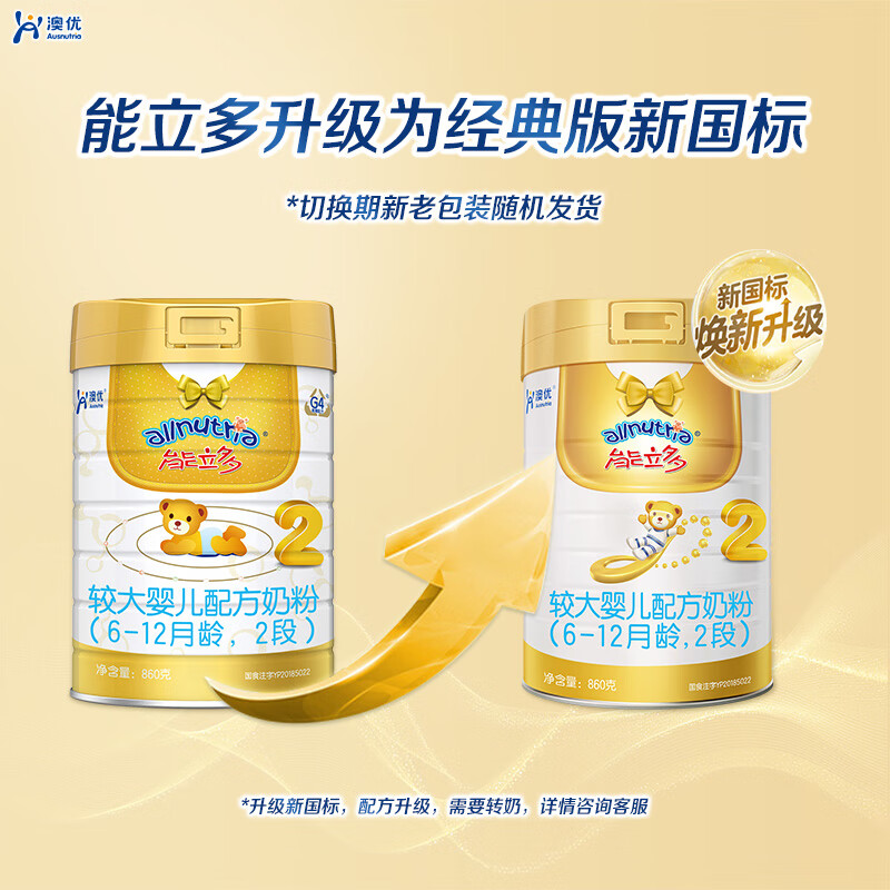 澳优(Ausnutria)荷兰进口能立多 幼儿配方奶粉2段(6-12月适用)860g*6罐 新国标价格:2032.00元!