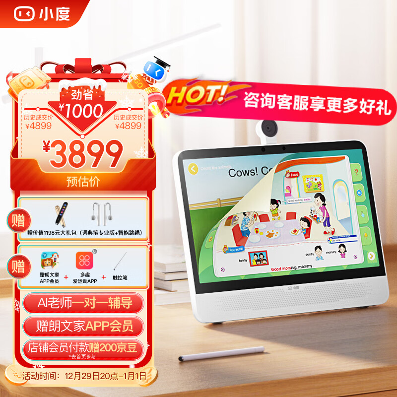 小度大屏护眼学习机P20 Pro博学版 15.6英寸学生平板 6+128G家教机早教机 AI老师一对一 AI精准学 朗文家会员价格:3899.00元!