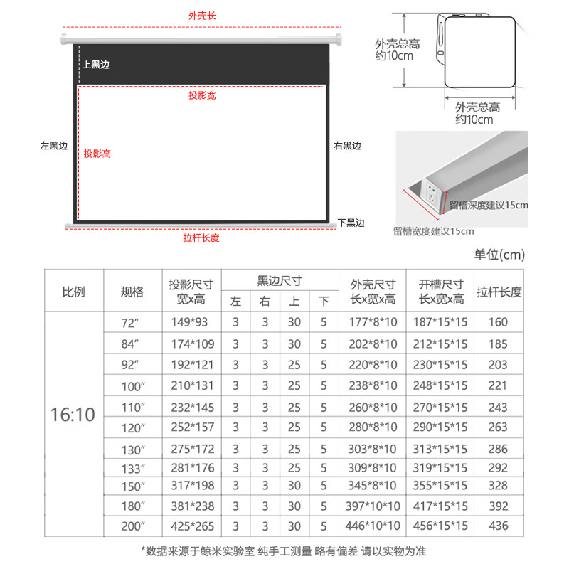 鲸米(JINGMI)投影幕布200英寸16:10电动遥控幕布D6高清4K灰玻纤抗光家用办公电动升降投影机幕布价格:4199.00元!