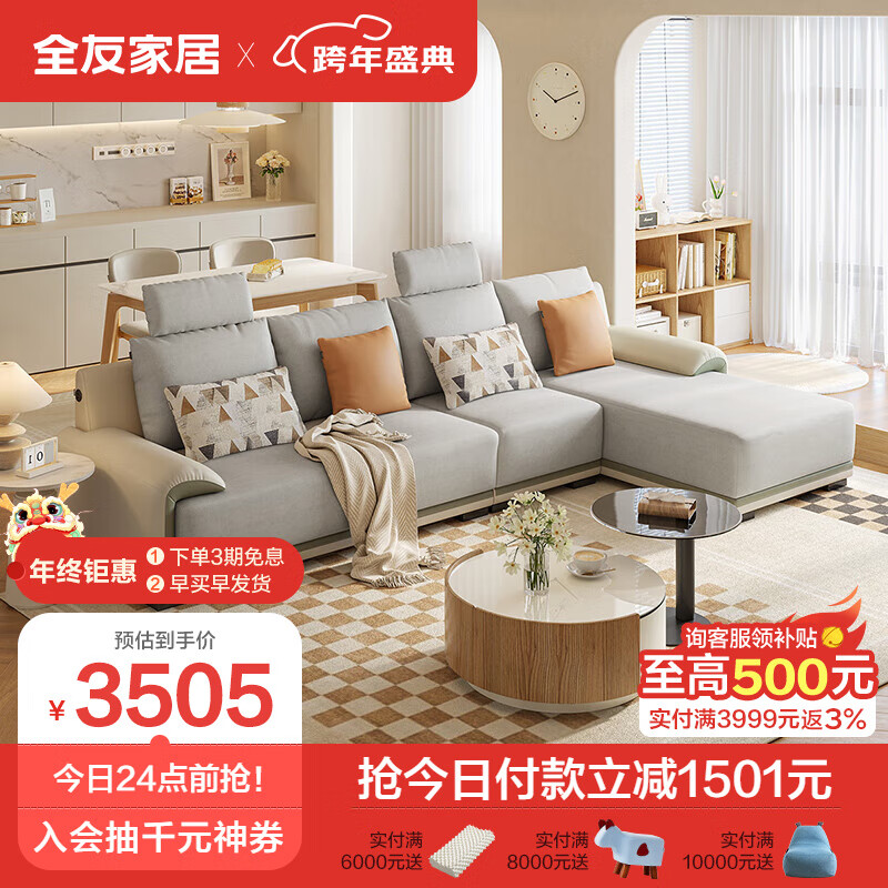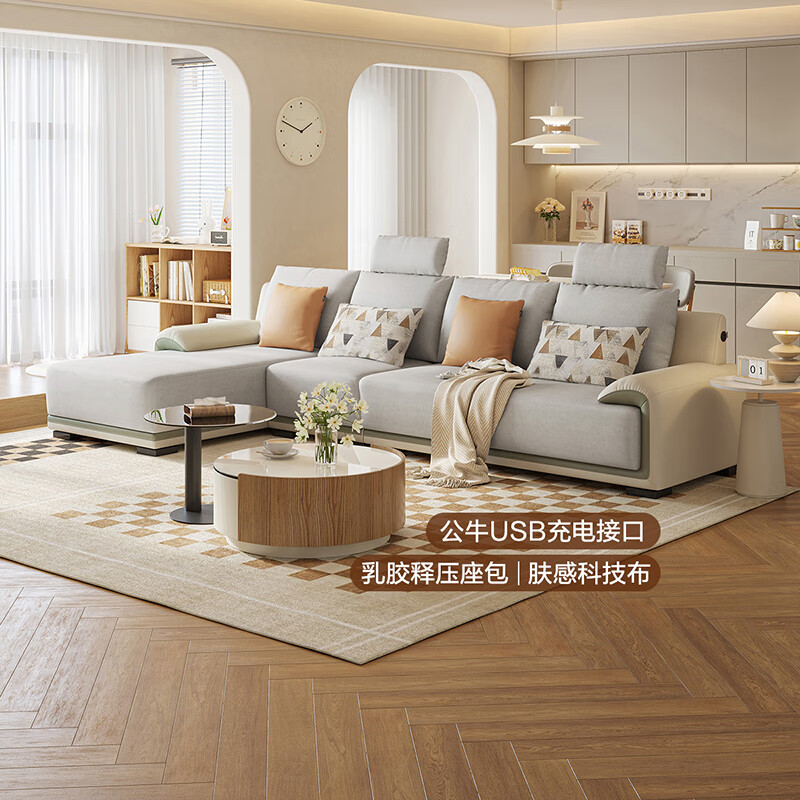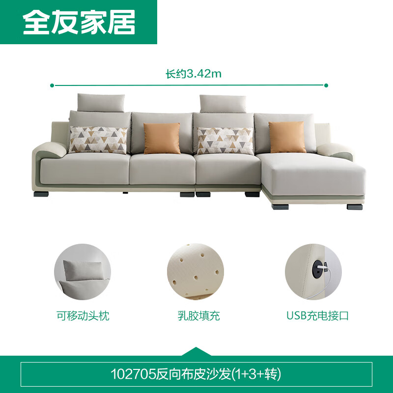 全友家居 沙发现代简约科技布沙发充电功能小户型客厅沙发座具102705价格:5006.63元!