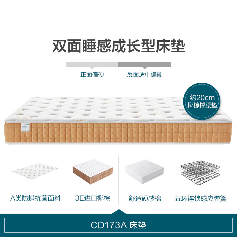 林氏家居原林氏木业床垫儿童床垫弹簧椰棕垫20cm厚正反用CD173,1.5米×2米价格:2198.00元!