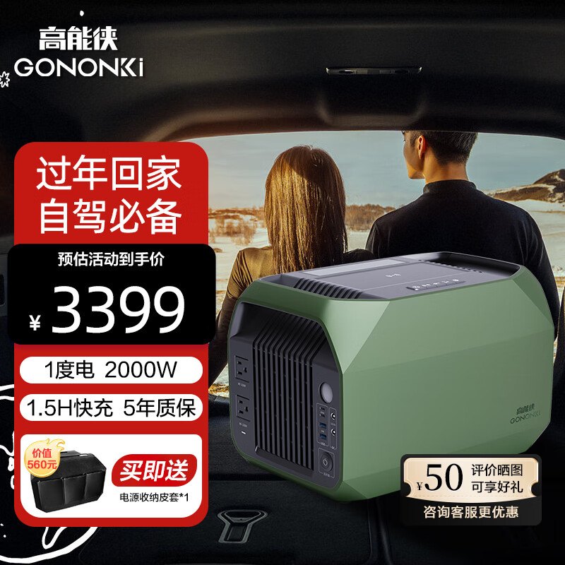 高能侠2000w大功率1度电快充220v户外电源车载露营野营便携应急储能绿色价格:6299.00元!