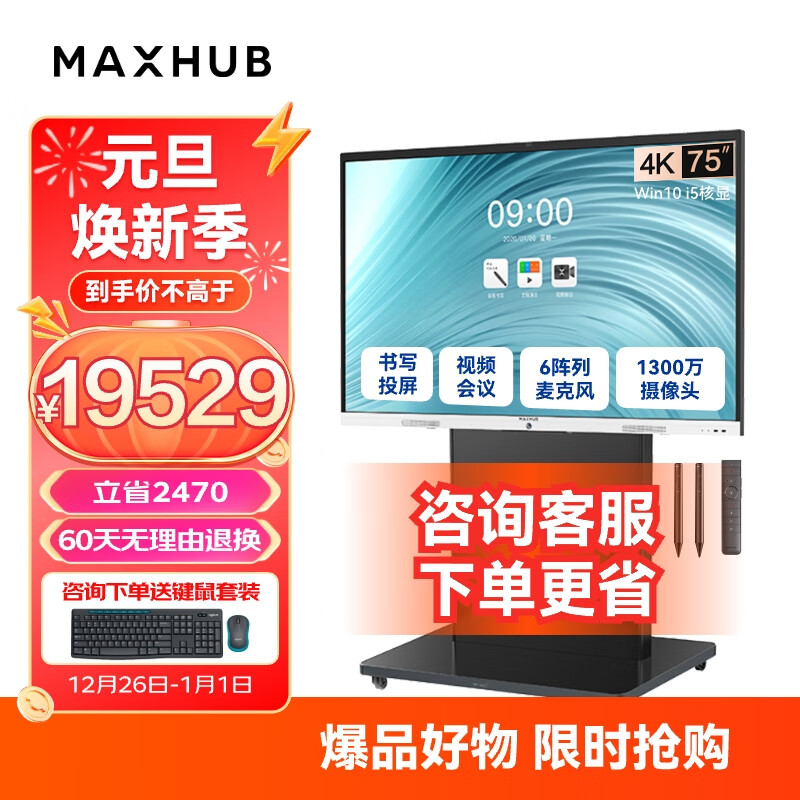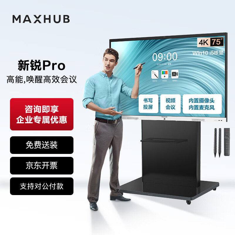 MAXHUB视频会议平板一体机教学智慧屏摄像头麦克风触摸屏白板解决方案新锐Pro75 Win10+商务支架+遥控器价格:19529.00元!