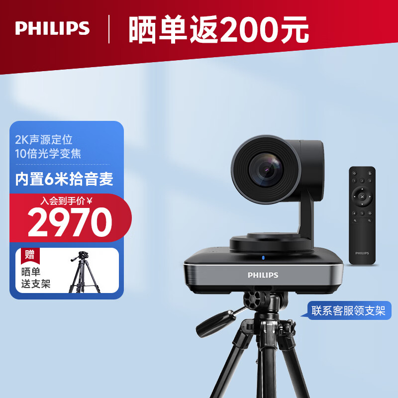 飞利浦PHILIPS 电脑摄像头2K高清视频会议摄像头 10倍变焦 360°云台声源定位 直播录播教育网课摄像头PSE0600价格:3500.00元!