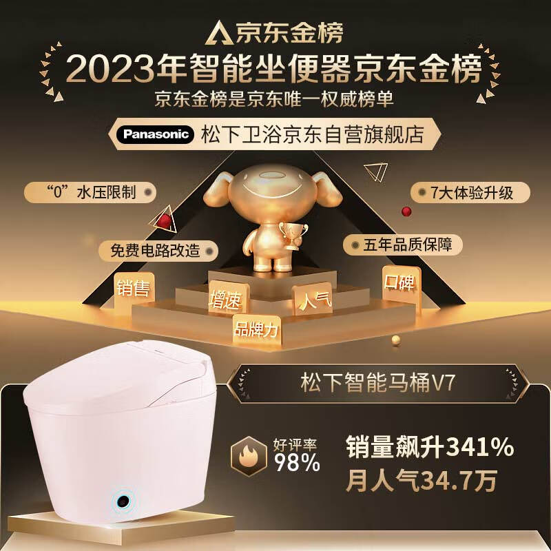 松下(Panasonic)即热式智能马桶V7 无水压限制 脚踢翻盖翻圈 分体式CHGJ724WC价格:3999.00元!