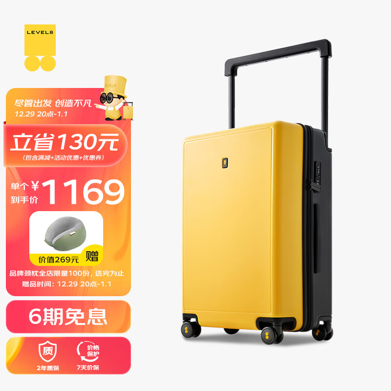 地平线8号(LEVEL8)行李箱男女密码万向轮拉杆箱 大旅行家24英寸宽拉杆PC箱 黑黄拼色价格:1299.00元!
