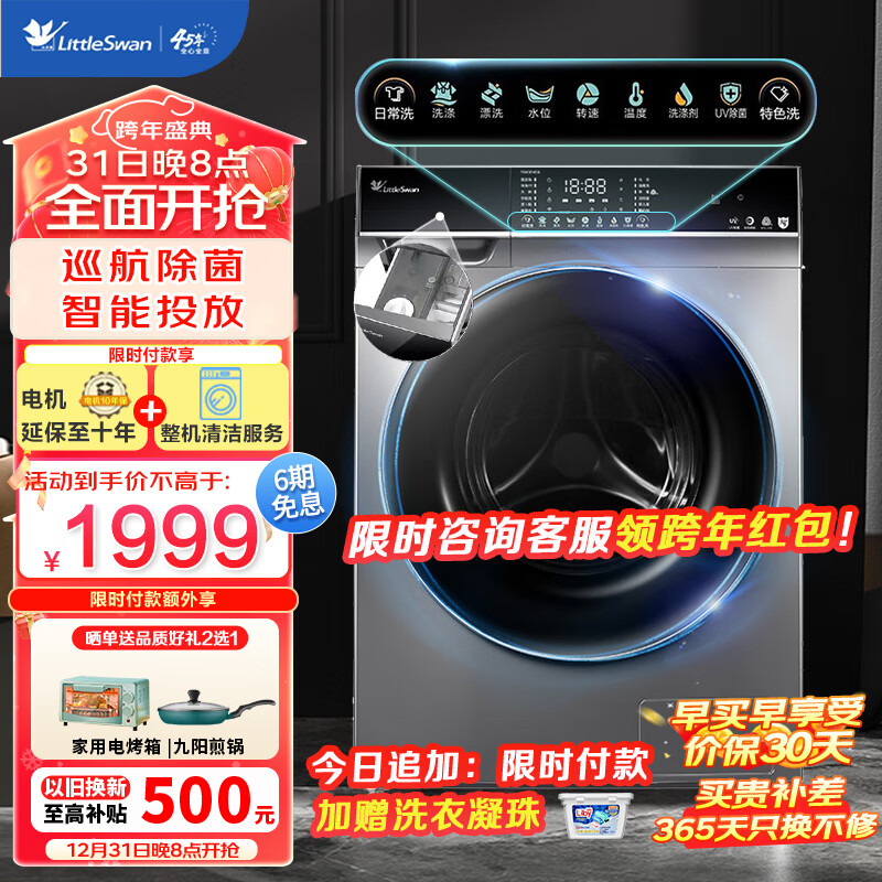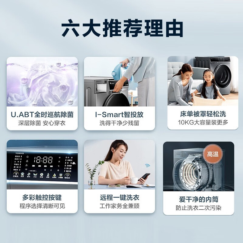 小天鹅(LittleSwan)滚筒洗衣机全自动 10KG洗脱一体变频 京东小家 巡航除菌 远程智控 智能投放 以旧换新 TG100VC6价格:1969.00元!