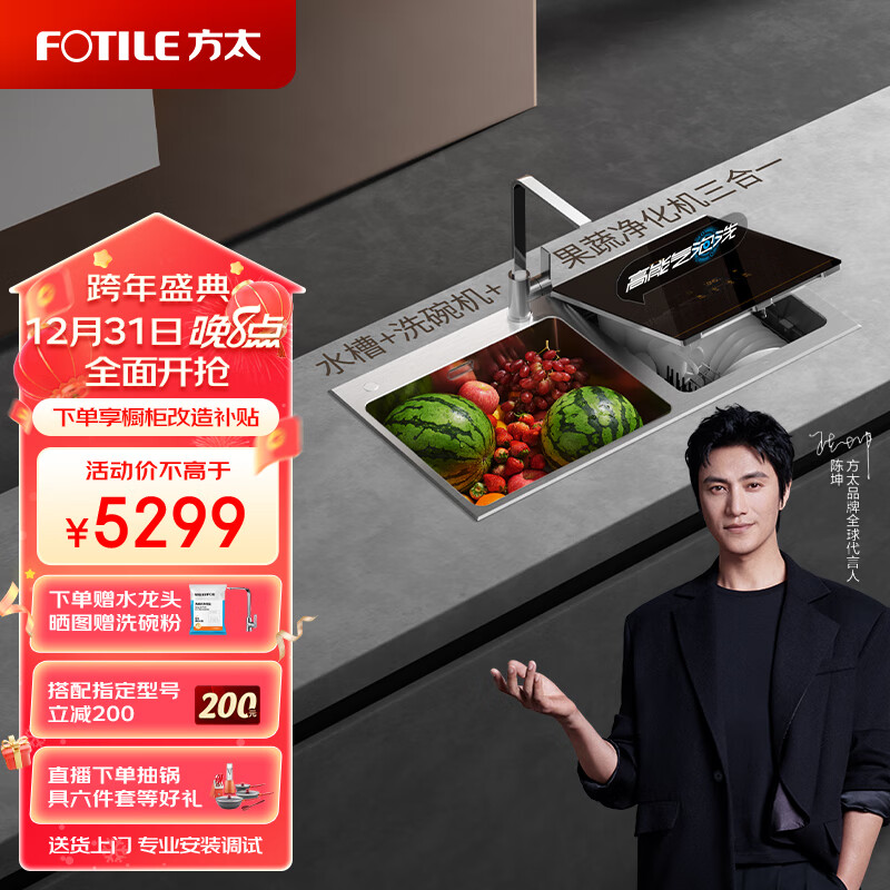 方太水槽洗碗机家用 高能气泡洗 升级41升大容量水槽 跨界三合一 加强除菌 洗海鲜果蔬去农残CT03B价格:5299.00元!