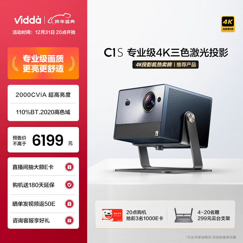 Vidda C1S 海信 4K超高清白天三色激光投影 投影仪家用家庭影院卧室投墙 办公室智能护眼 游戏投影240HZ高刷价格:6199.00元!
