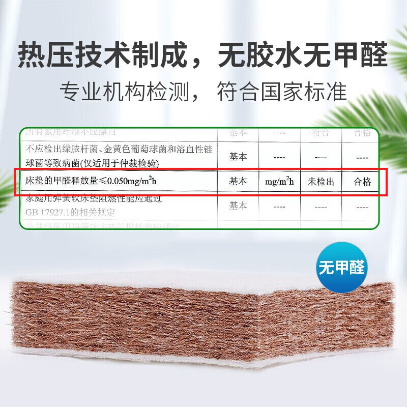 4、买了两个,一个纯棕垫,一个弹簧加薄棕垫,硬度很合适,满意