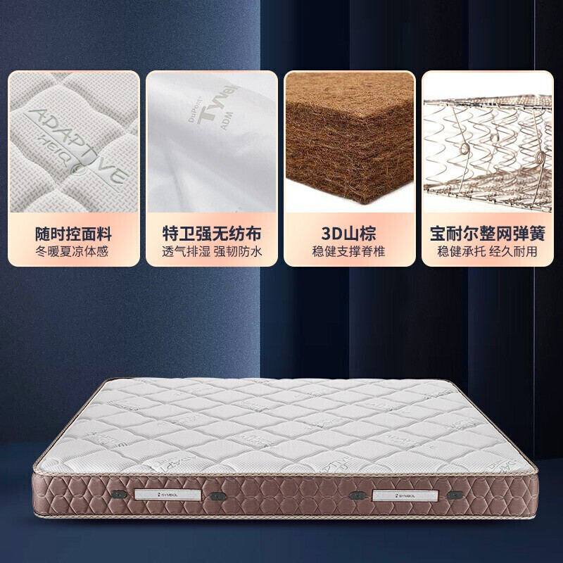 穗宝(SYMBOL)床垫环保3D山棕弹簧床垫健脊棕垫软硬双面 亲爱嘚1.5米*1.9米价格:2799.00元!