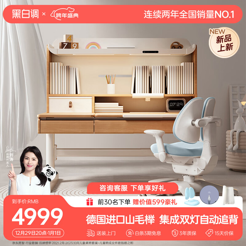 黑白调学习时光S2学习舱【德国进口山毛榉 集成双灯 自动追背】儿童学习桌1.2m蓝价格:5999.00元!