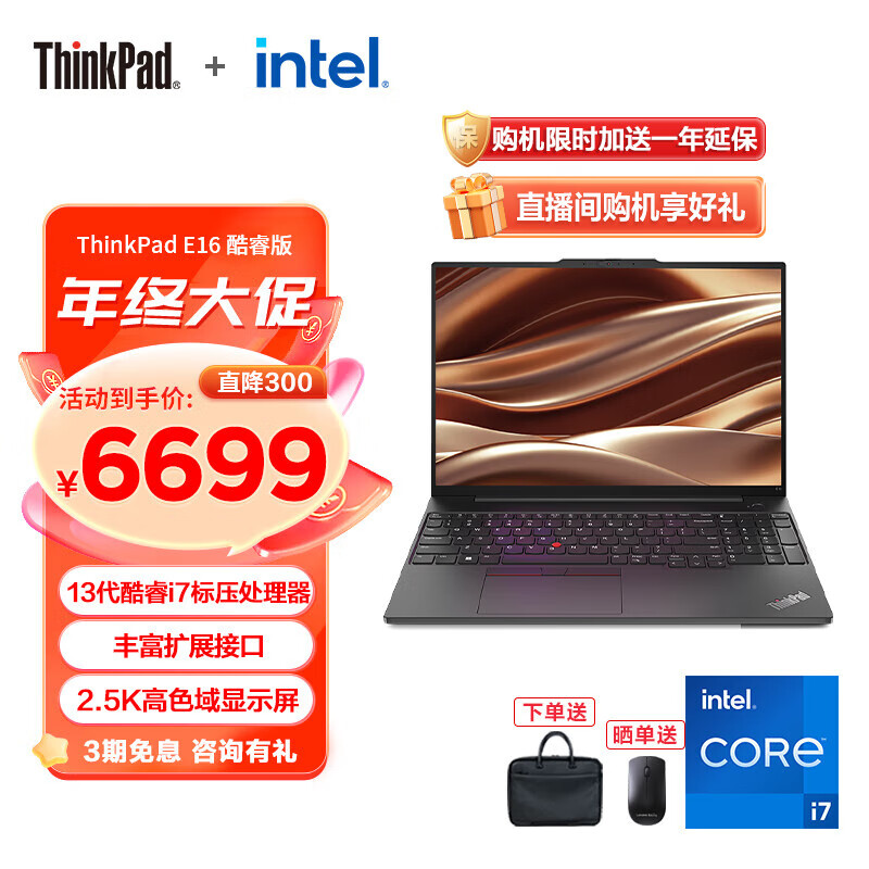 ThinkPad 联想 E16 13代英特尔酷睿处理器 E15升级版 商务办公学生笔记本电脑大屏轻薄本 I7-13700H 16G 1TB 03CD价格:6699.00元!
