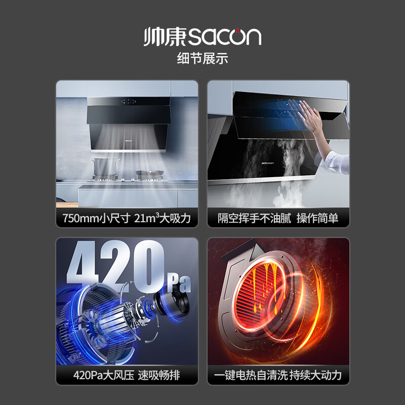 不得不说的是帅康帅康(Sacon)的朋友有点多,这回就给大家介绍下,这款才出不久,特别的受欢迎,一直换一台抽烟机,这台尺寸合适,抽油烟机吸力很大,尺寸合适,非常好!