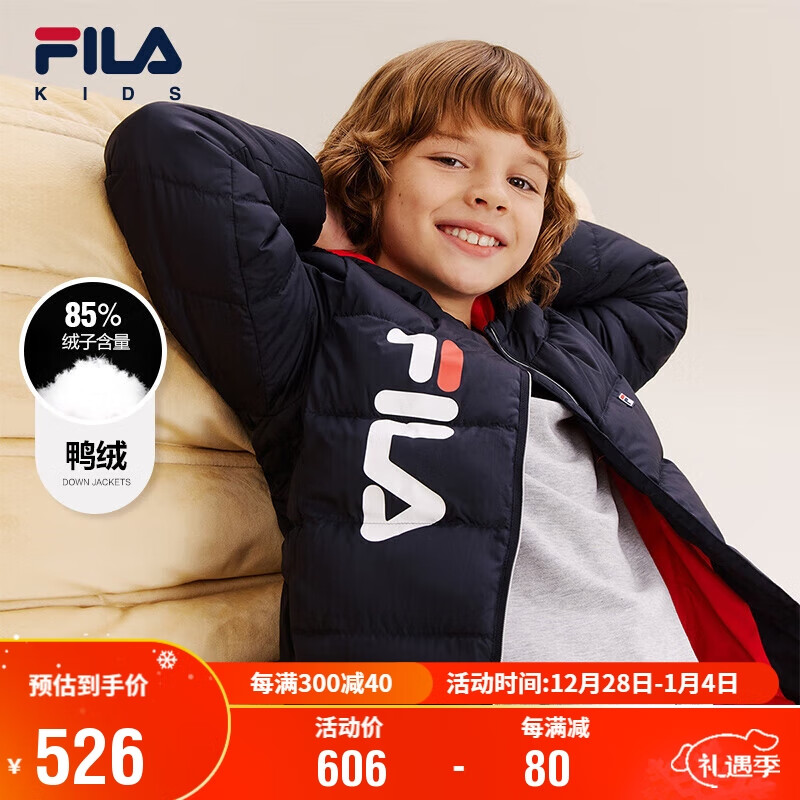 FILA斐乐童装儿童轻薄羽绒服2023秋季男小童保暖短款运动外套价格:606.00元!